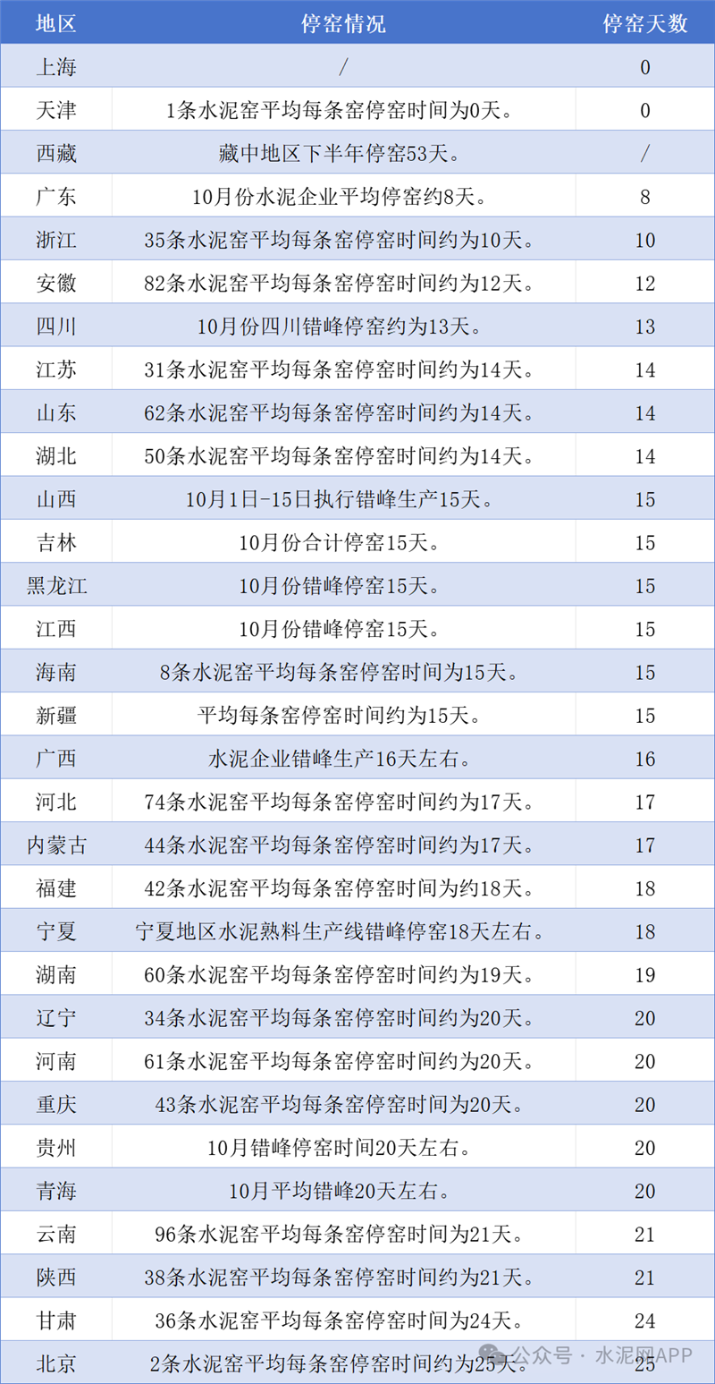 31省市水泥企业停窑统计!多地开启新一轮错峰...