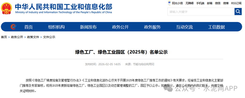 工信部:58家水泥企业入选2025年度绿色工厂名单!5家水泥企业移出名单!