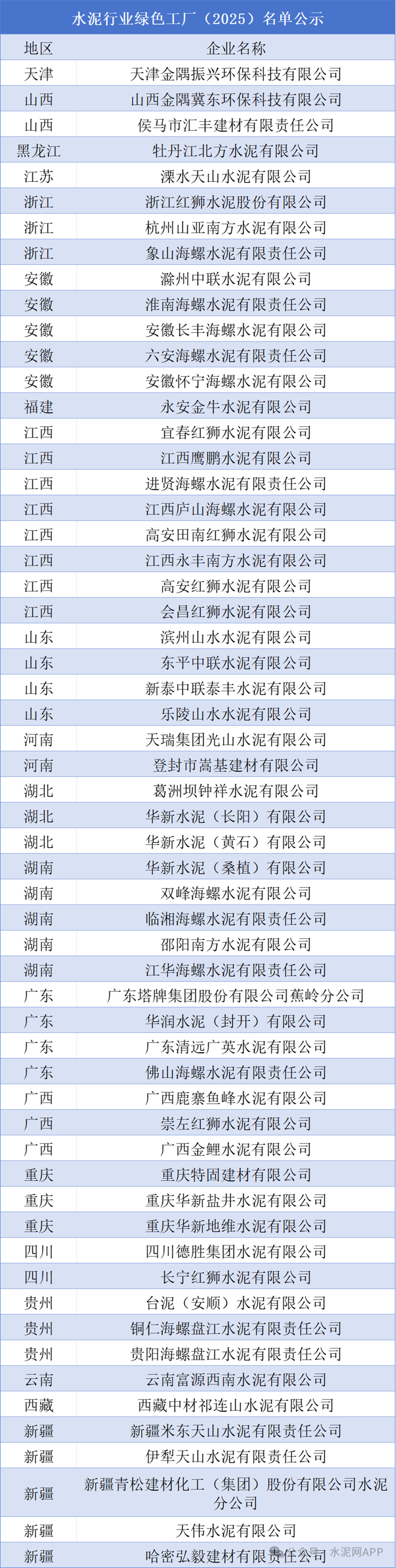 工信部:58家水泥企业入选2025年度绿色工厂名单!5家水泥企业移出名单!